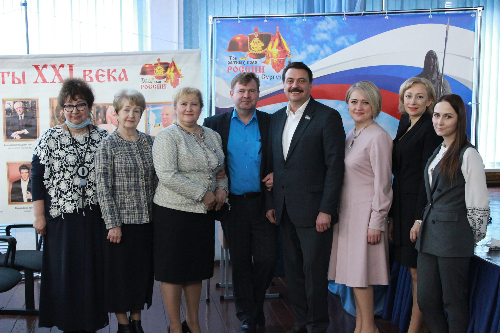 В начале встречи с приветственным словом выступил заместитель председателя Думы ХМАО-Югры Александр Сальников: «Три ратных поля России» - это тот проект, который не идет сверху, это проект, который зарождается снизу и именно инициатива и желание детей и родителей дают жизнь, подпитывают этот проект. Вы, Александр Андреевич, как один из наших идейных вдохновителей, именно российской истории, именно понимания России, как державы в мировом масштабе, нам очень помогаете. Мы очень рады Вас видеть и слышать»
